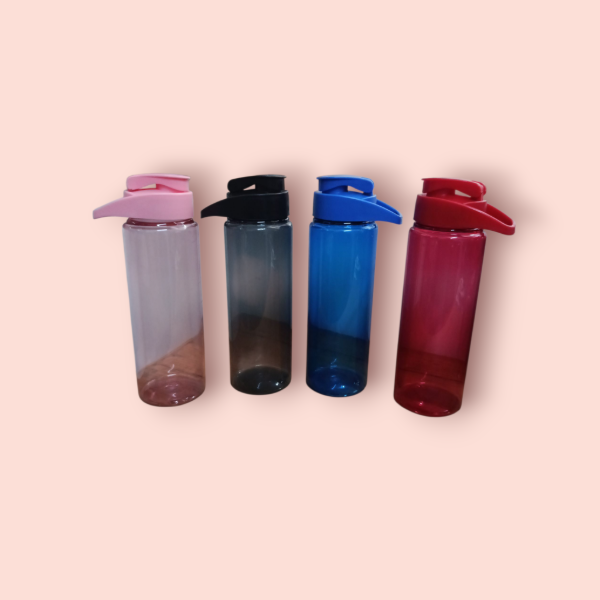 Botella de plástico con tapa. Vienen varios colores. Ver fotos. Ideal para ahora que se viene calor estar súper hidratados