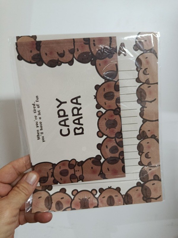 Papel de carta con sobres cuatro unidades de cada uno. Podés elegir capibara o Kitty