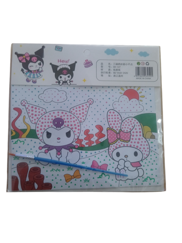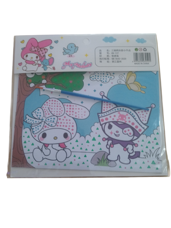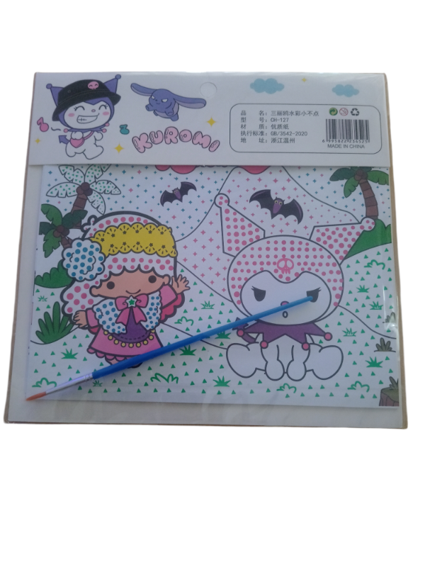 Vienen 5 dibujos y un pincel. Dónde con un poco de agua los colores empiezan a aparecer . Muy hermoso!!