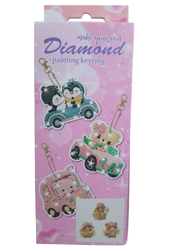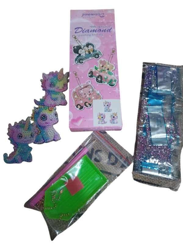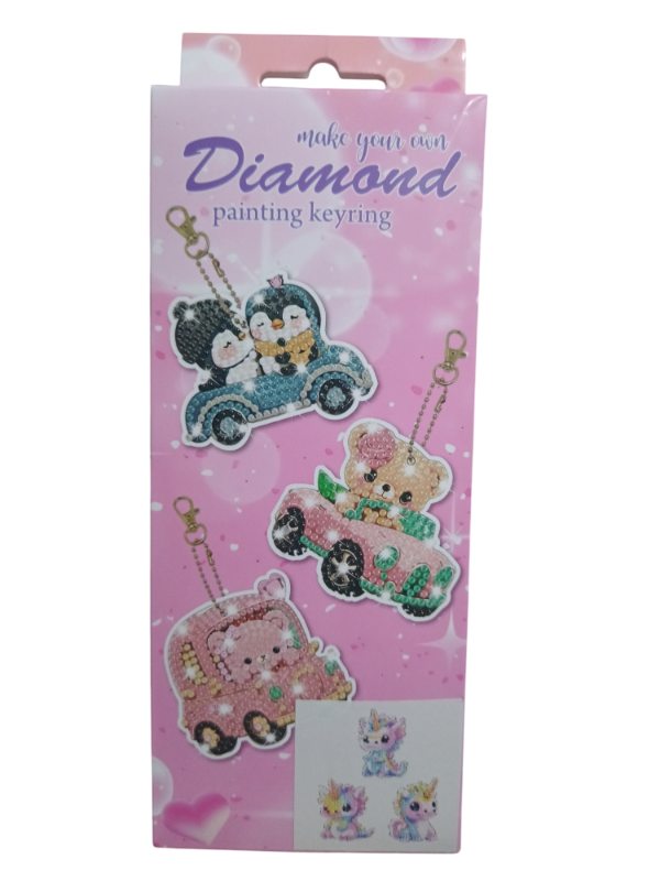 Hace tus llaveros más lindos con las figuras de diamantes. Vienen 3 figuras en acrílico para decorar y su cadenita para colgar como llavero. Hermosa actividad.